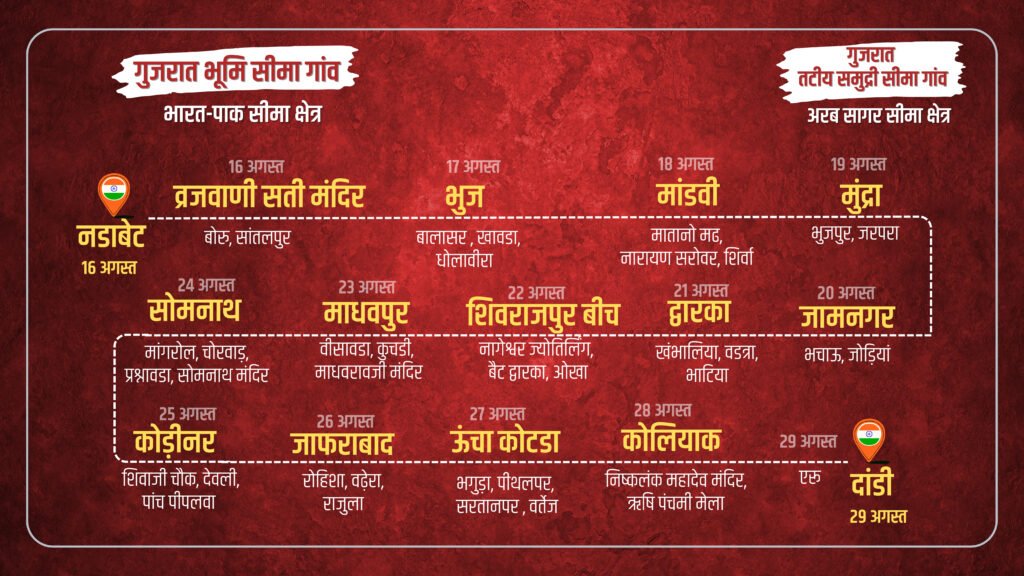 Special arrangements have been made for community engagement, including Raksha Bandhan collection tables to promote the bond between citizens and protectors of the nation, and postcard collection tables for gathering heartfelt messages from the public. A significant highlight will be the installation of the Sindoor Swabhiman flag, symbolizing self-respect, cultural identity, and patriotic pride.
